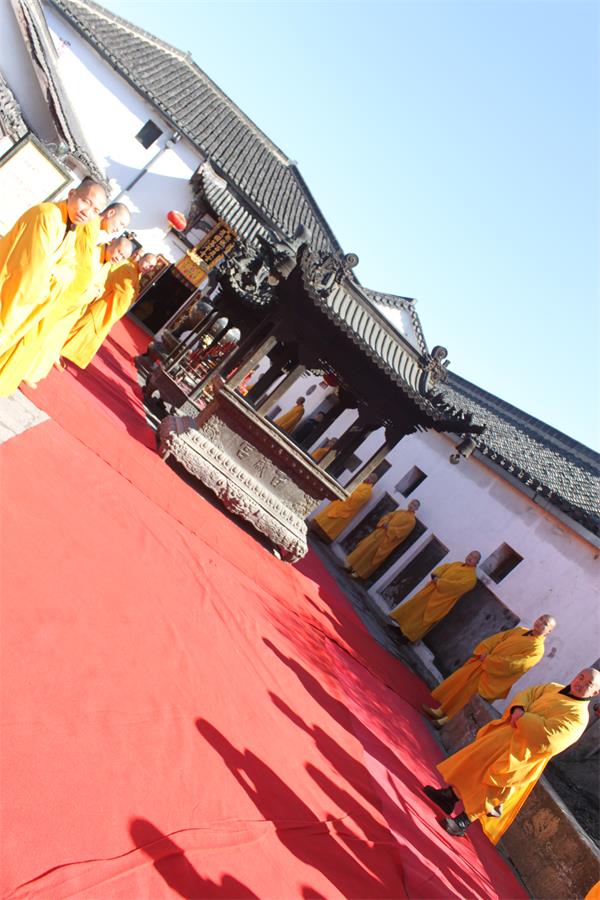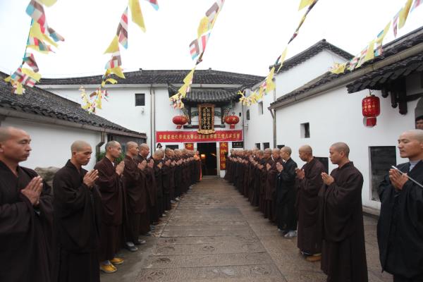 2015年5月23日(農歷四月初六),安徽九華山百歲宮傳授三壇大戒第十六天:供十師齋:請十師、供十師齋。上午十時,諸新戒于大雄...
